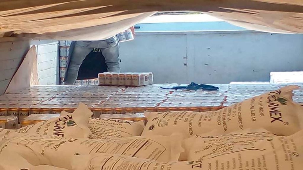 Por lo cual se procedió a realizar una inspección del contenido de la caja del tráiler, en donde los agentes observaron que, escondido detrás de bultos de azúcar, se encontraba un cargamento de charolas de cerveza,