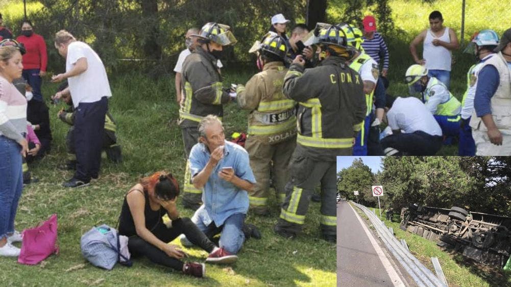 Deja 15 heridos, volcadura de un camión en la México-Cuernavaca. Fuerte accidente se registró a la altura del kilómetro 28 de la colonia Tepetitla, hacia Topilejo, en la carretera México-Cuernavaca. Al parecer, el accidente fue a causa de exceso de velocidad con que iba el conductor.