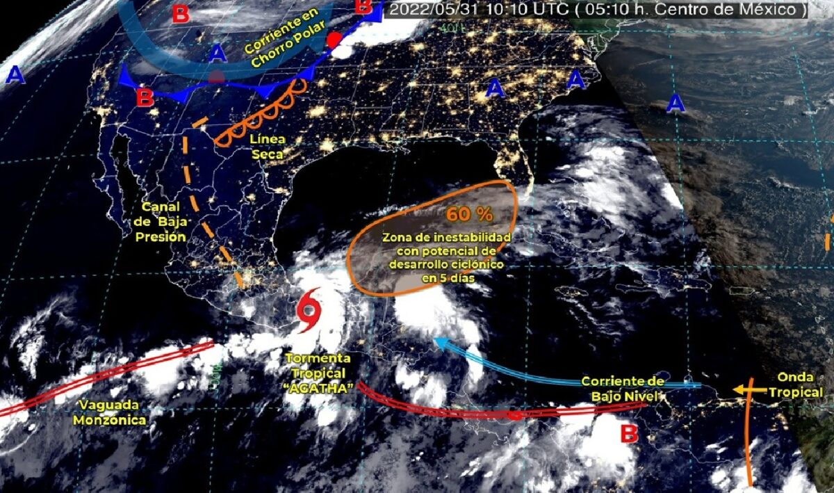 Agatha, que se pronosticaba que tocaría tierra como huracán categoría 3, es el primer ciclón de la temporada en el océano Pacífico.