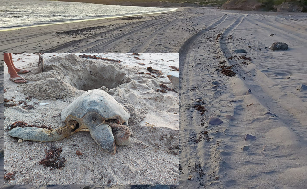 #SanCarlos Confirma Médico Veterinario de Vida Silvestre, Elsa Coria Galindo, que tortuga marina fue atropellada por uno de los vehículos llamados "raicers" que impunemente circulan en esa zona donde desovan las tortugas de mayo a octubre.#LaManga#Sonora#ecocidio@PROFEPA_Mx pic.twitter.com/xOknsOOjRg