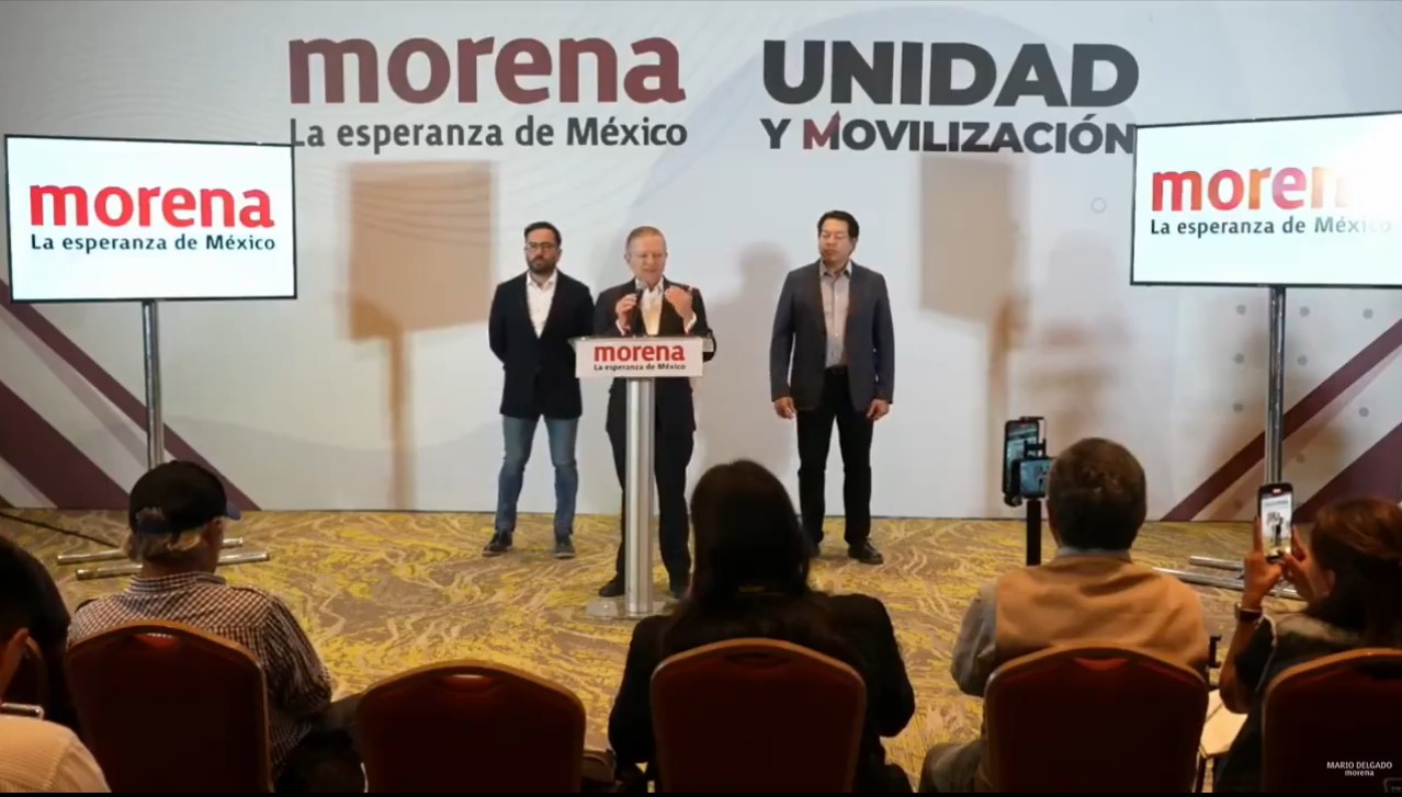 En materia electoral, presentarán una queja ante el INE por violaciones a la imparcialidad y la equidad en la contienda, “derivado de la realización de reuniones privadas, según ha trascendido en la prensa, con líderes de partidos políticos en una casa en Lomas de Chapultepec con estos líderes partidistas, para preparar esta pesquisa y denuncia, y para acordar distintas cuestiones en materia electoral”.