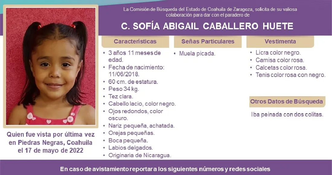 Hanier Vismar Caballero padre de la menor, esperaba en Wisconsin noticias de su esposa e hija ajeno a la tragedia, cuando fue informado que Irma había fallecido en las aguas del Río Bravo, en el lado de Piedras Negras, en Coahuila.