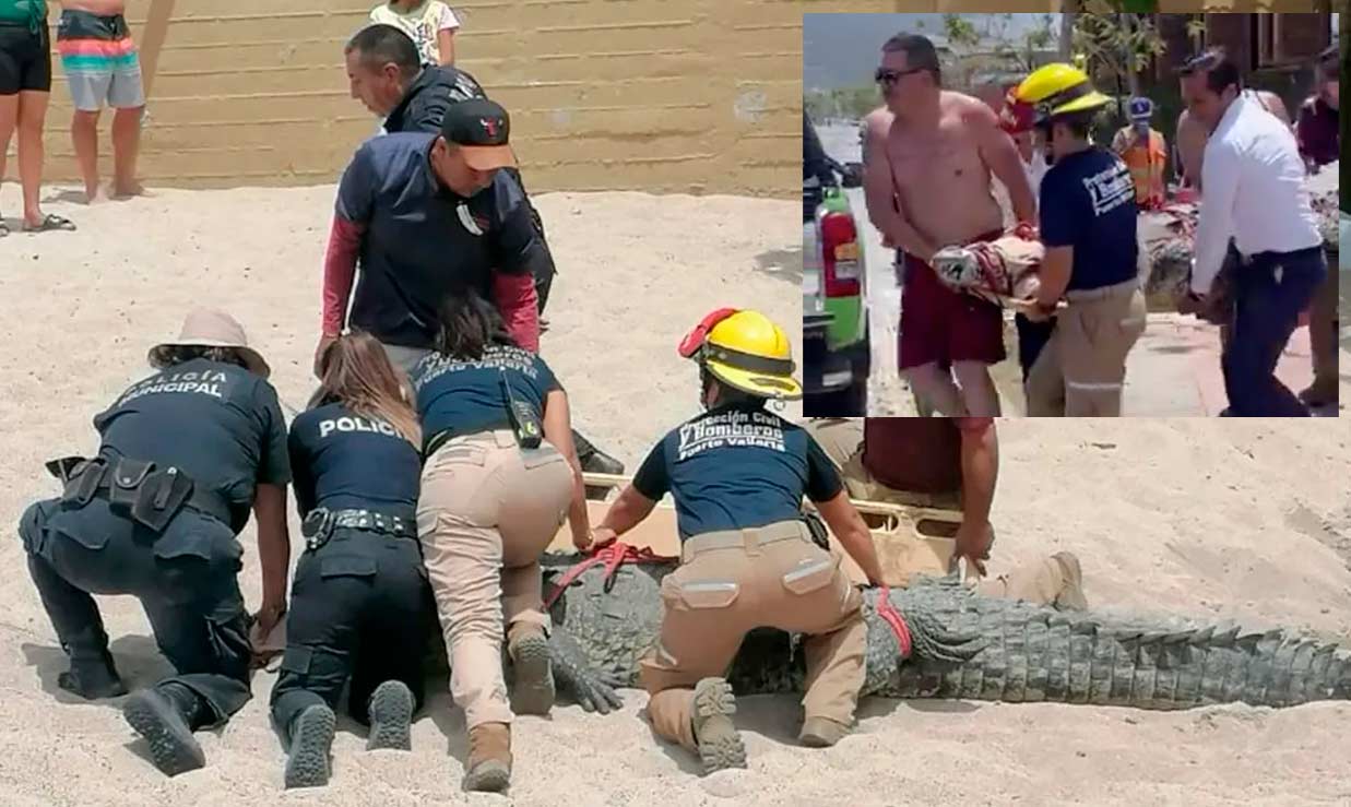 Un descomunal cocodrilo de un cuarto de tonelada de peso y más de tres metros y medio de largo fue capturado en la zona turística de Puerto Vallarta, Jalisco. Tras su captura, el animal fue reubicado en una zona segura.