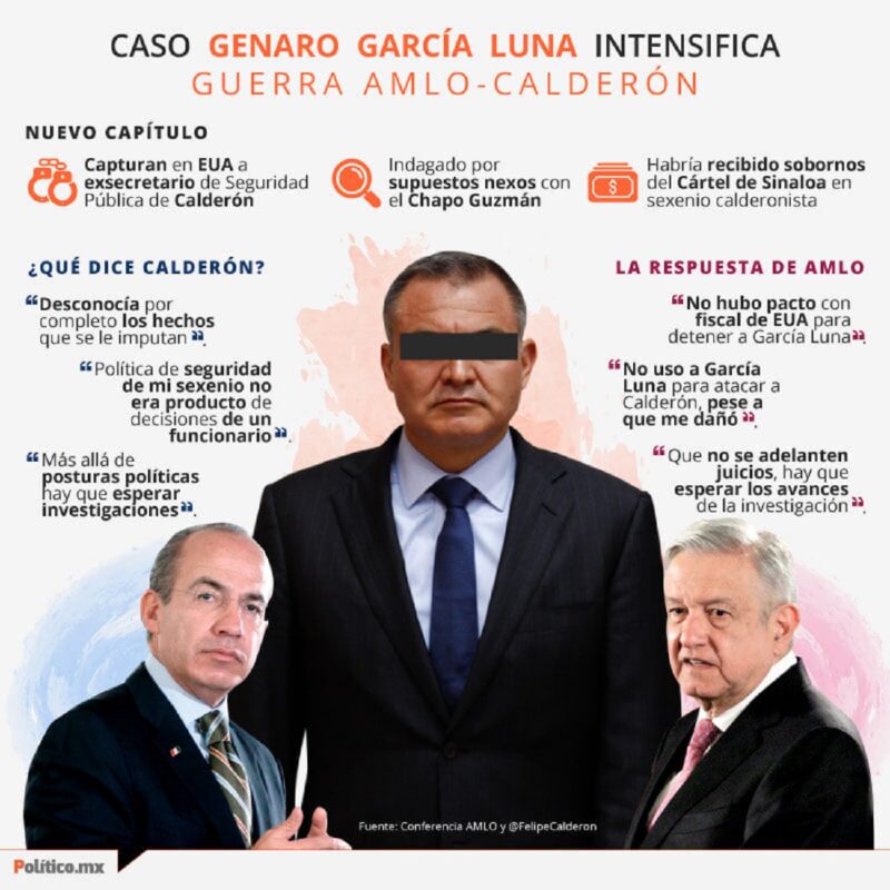 Genaro García Luna, quien fue secretario de Seguridad Pública de 2006 a 2012, es decir, durante el Gobierno del entonces Presidente Felipe Calderón, está acusado en Estados Unidos de recibir millones de dólares en sobornos del Cártel de Sinaloa a cambio de permitir que la organización criminal pudiera operar a sus anchas.