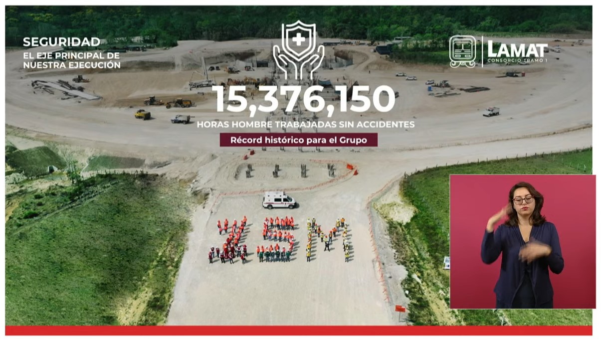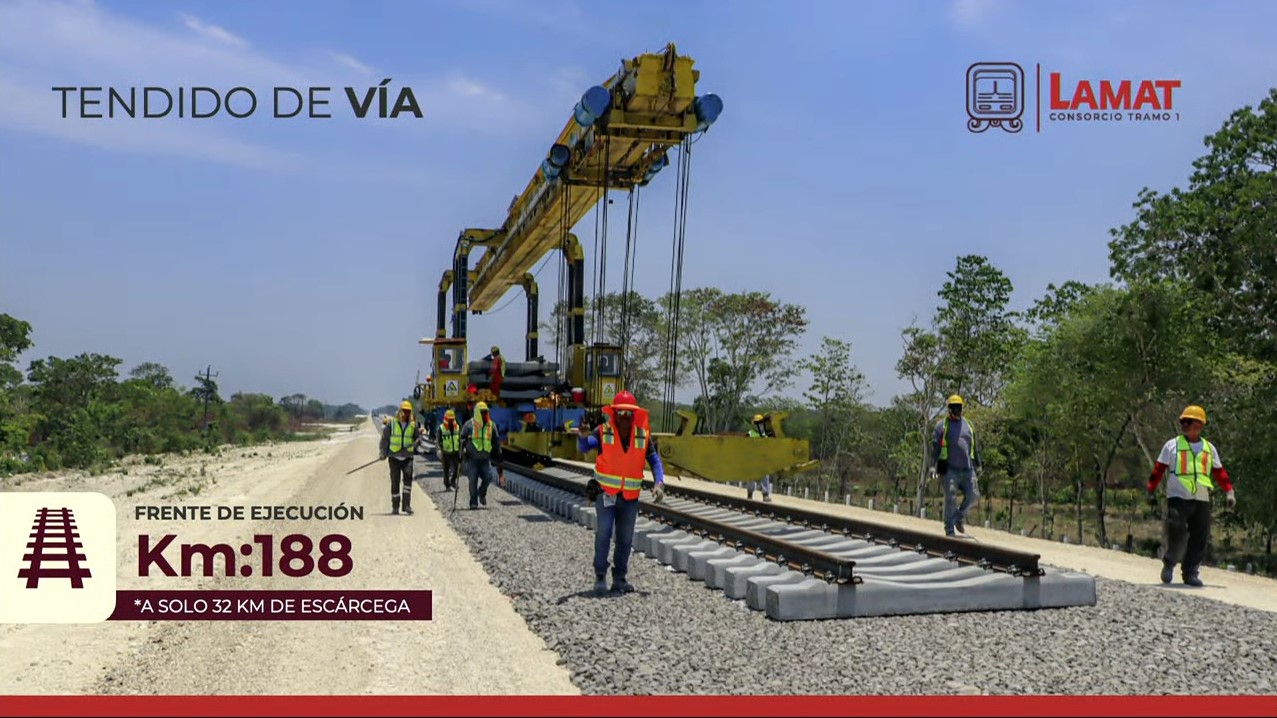 El presidente y director ejecutivo de Mota-Engil Latinoamérica, João Pedro Parreira, precisó que el tendido de vía alcanza 188 kilómetros, es decir, sólo restan 32 kilómetros para llegar a Escárcega. En tanto, celebró el récord histórico de más de 15 millones de horas trabajadas sin accidentes en la construcción del Tren Maya.