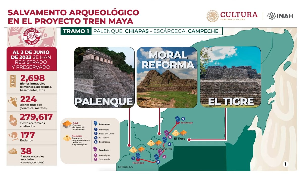 Sobre el salvamento arqueológico, el director general del Instituto Nacional de Antropología e Historia (INAH), Diego Prieto Hernández, dio cuenta del registro y preservación al 3 de julio: