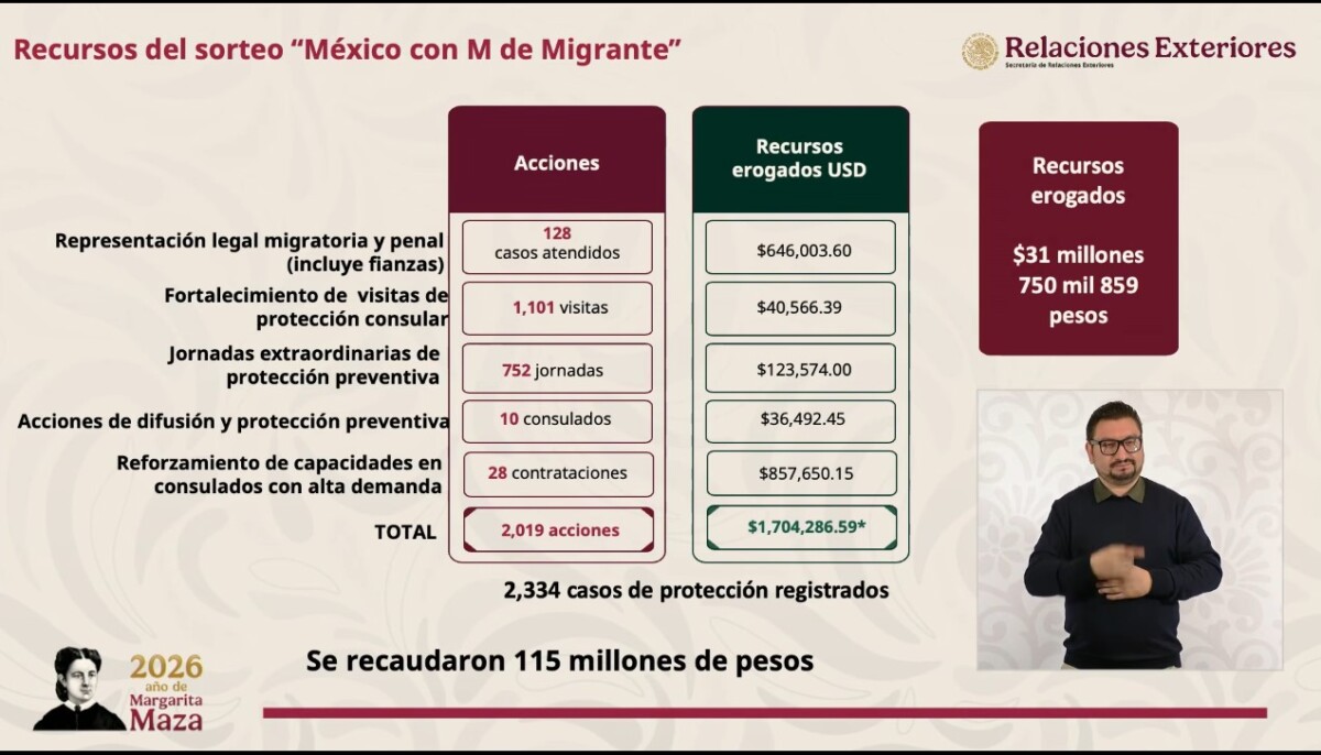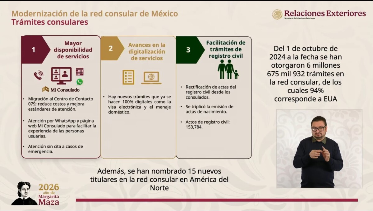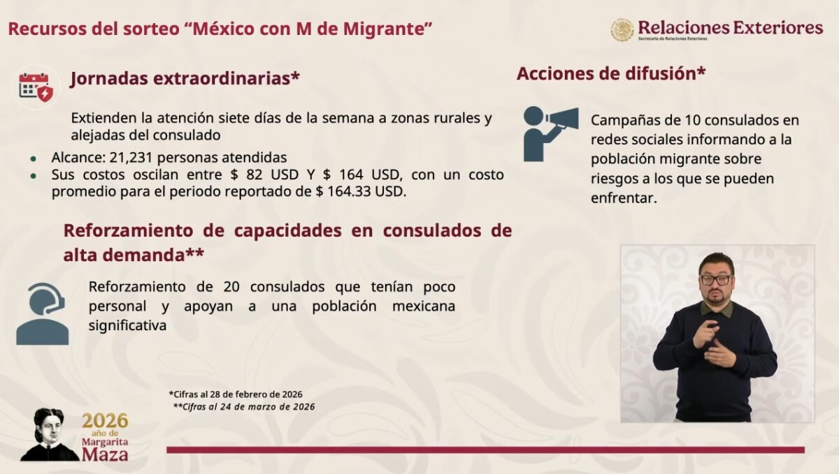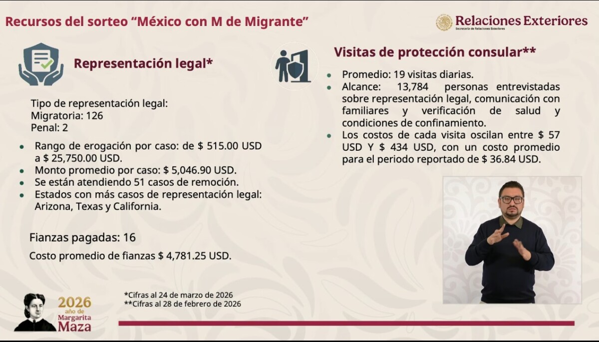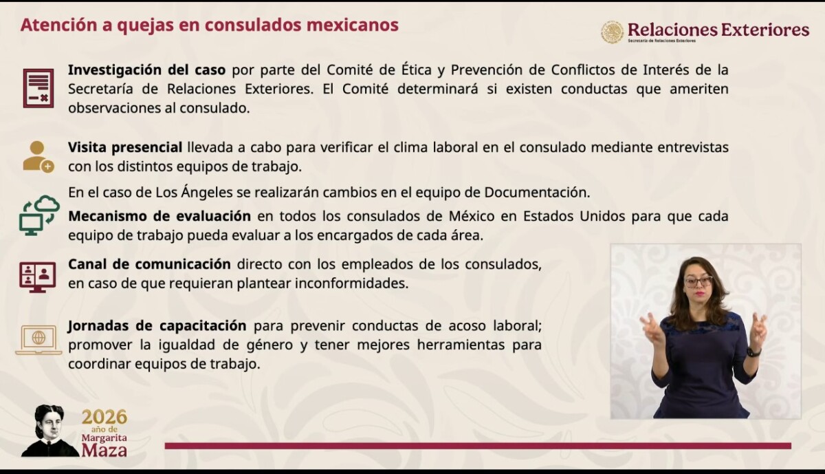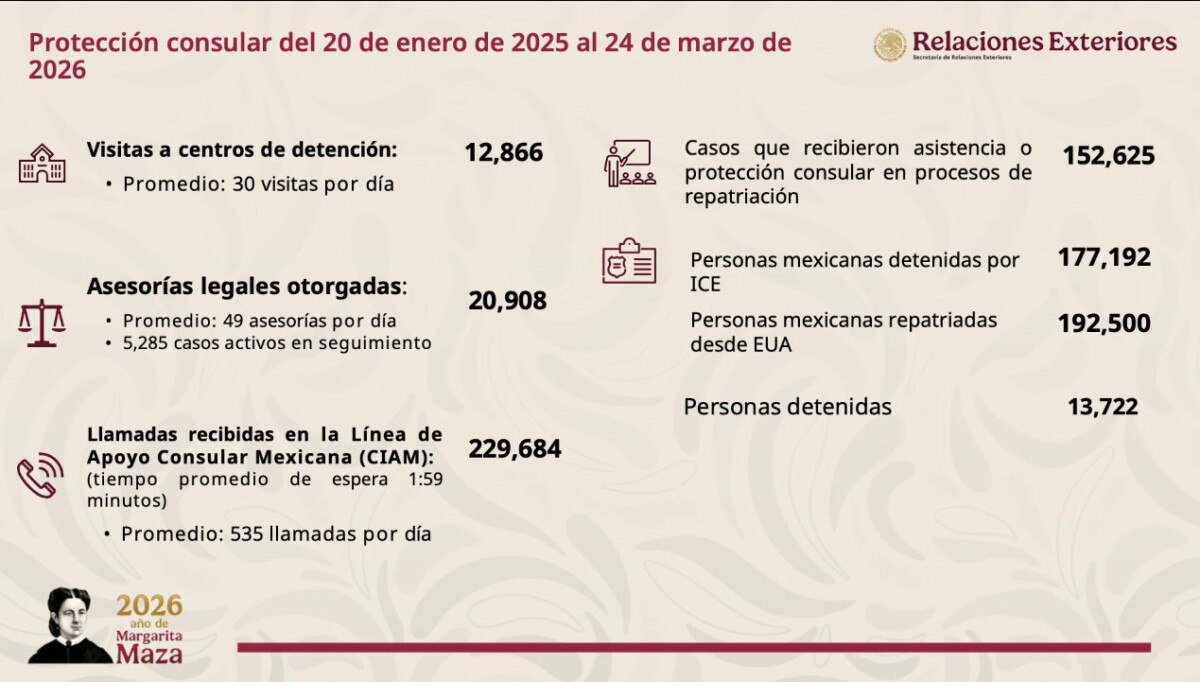 Agregó que la Línea de Apoyo Consular Mexicano (520 623 7874 desde Estados Unidos y 079 desde México), es parte del compromiso del Gobierno de México para proteger los derechos de la comunidad migrante en Estados Unidos, un servicio gratuito, confidencial y disponible las 24 horas del día para ofrecer orientación y apoyo a mexicanas y mexicanos que viven en Estados Unidos.