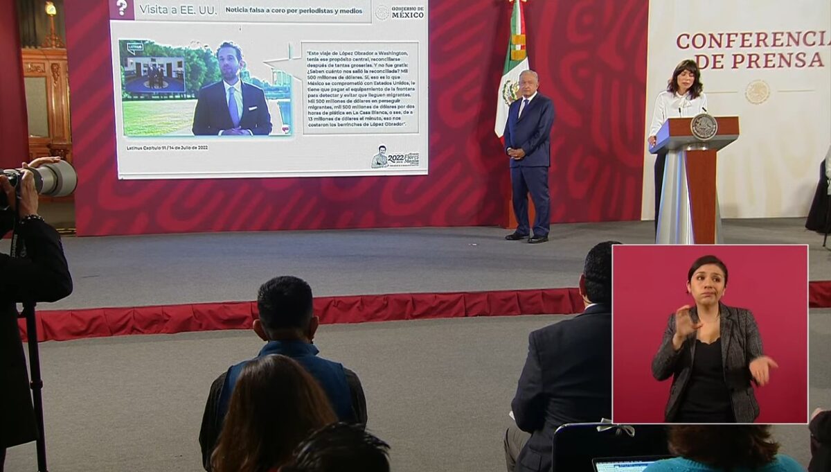 “Están dedicados por entero a calumniar, a mentir, Imagínense a (Carlos) Loret de Mola diciendo de que fui a entregarles mil 500 millones de dólares a los estadounidenses, al gobierno de Estados Unidos, que me los pidió el presidente Biden. ¡Una gran mentira!”