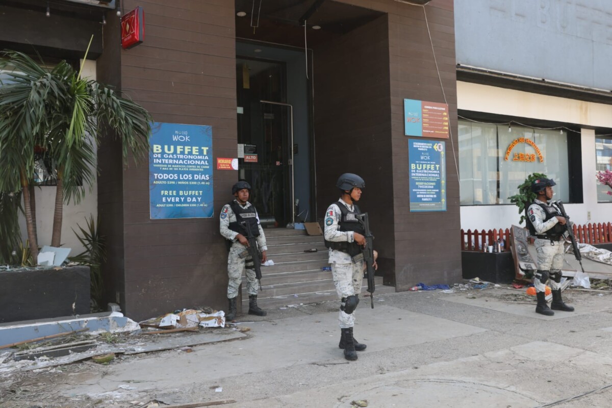 Tras extensa oleada de saqueos a comercios que se desató tras el paso del devastador huracán Otis, la Guardia Nacional desplegó centenares de elementos que ahora cuidan lo que quedó del frenesí de pìllaje.