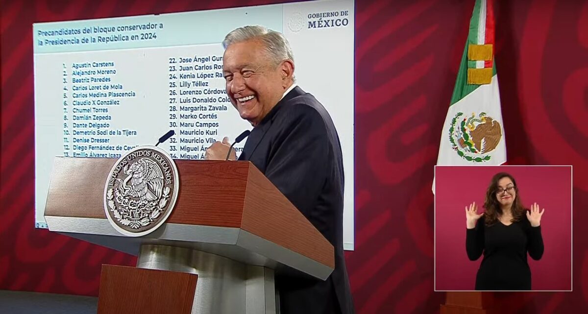 Por ello, López Obrador adelantó que daría a conocer por fin quiénes son “los que han expresado que quieren, o han aparecido en encuestas, o los han propuesto” para que contiendan por la candidatura de la oposición rumbo a la elección presidencial del 2024, con el objetivo de saber “cuántos hay del bloque conservador”.