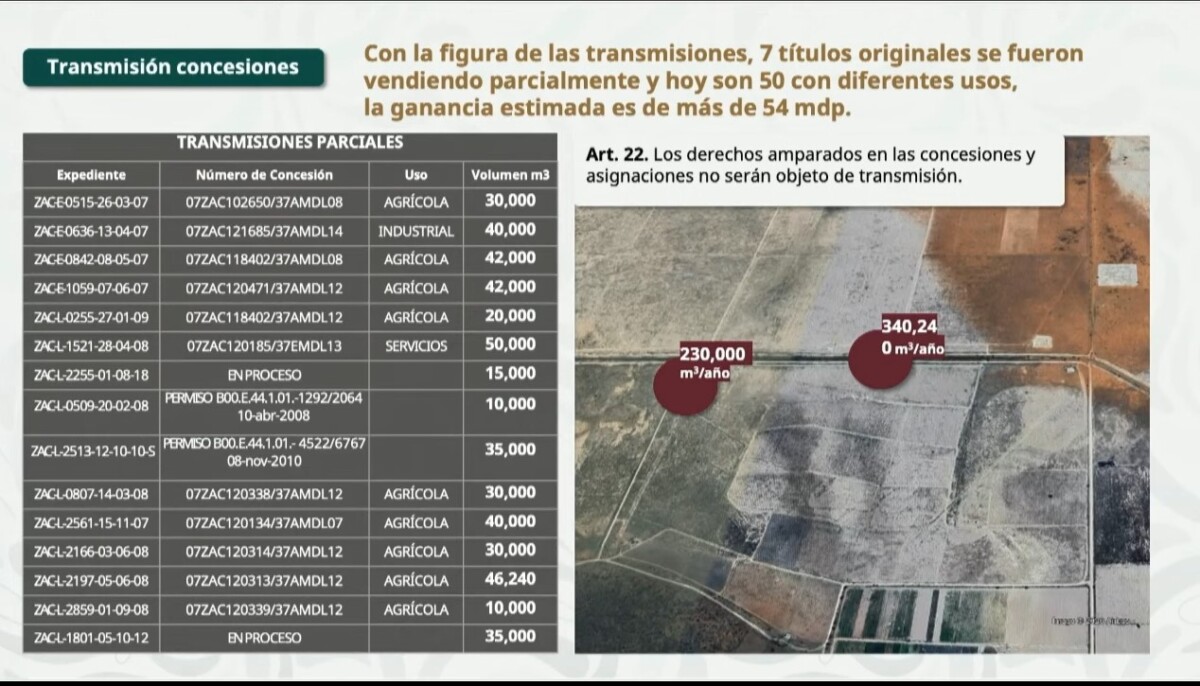 Como parte de los resultados de esta nueva legislación, se han detectado múltiples casos de uso indebido de concesiones. En Zacatecas, por ejemplo, siete títulos de concesión fueron transmitidos y fragmentados hasta convertirse en 50, lo que generó ganancias de hasta 54 millones de pesos para un particular.