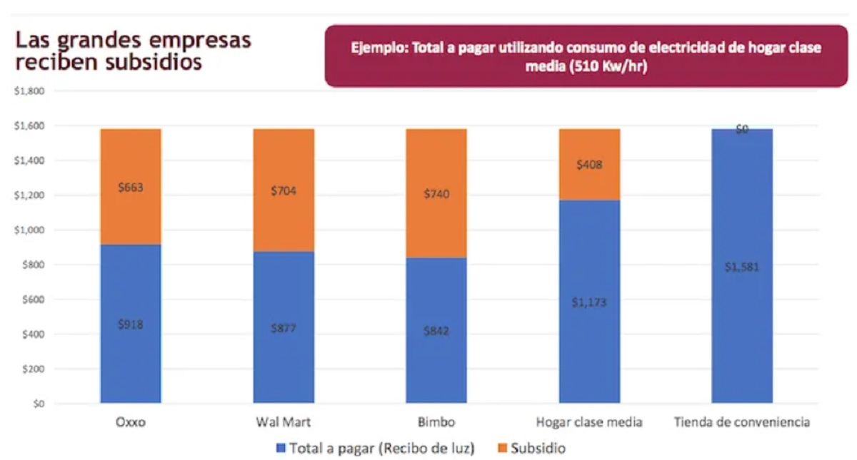 La Comisión Federal de Electricidad reveló que grandes empresas como Oxxo, propiedad de Femsa, Walmart y Bimbo sí reciben subsidios millonarios frente a los que tienen los hogares de la clase media o las tiendas más pequeñas del país.