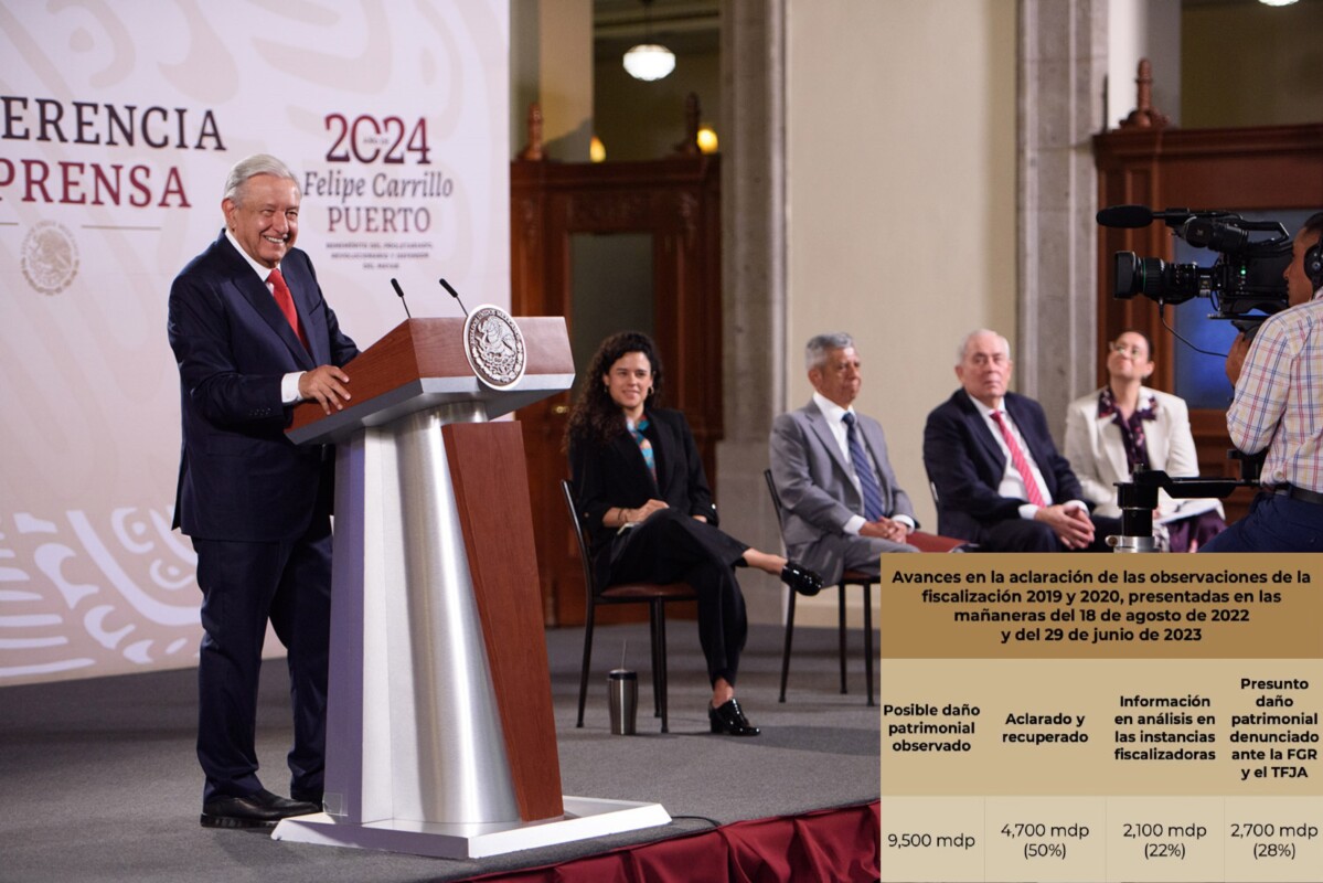 Esta cantidad “no fue aclarada durante el proceso de fiscalización, por lo que este constituye el monto del daño patrimonial, por lo cual se presentaron las denuncias penales ante Fiscalía General de la República (FGR) para que en su caso se judicialicen los expedientes y se determinen las sanciones a las personas servidoras públicas responsables”.