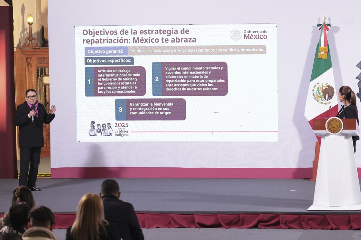 La secretaria de Gobernación, Rosa Icela Rodríguez, reveló detalles adicionales de la Estrategia de Repatriación “México te Abraza”, que busca brindar una recepción adecuada a mexicanos que sean deportados de Estados Unidos y brindarles certeza de las oportunidades para una vida digna en nuestro país.