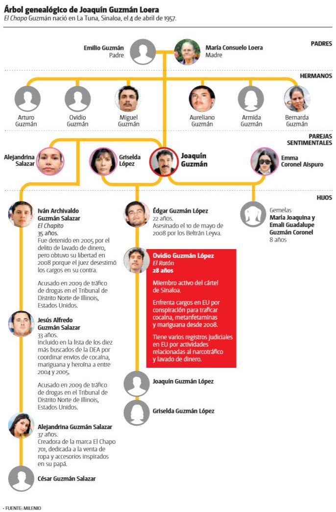 Esto luego que ayer el Gobierno de Estados Unidos ofreció una recompensa de 5 millones de dólares por información que lleve a la captura de los cuatro hijos del ex líder del Cártel de Sinaloa: Ovidio Guzmán López, Iván Archivaldo Guzmán Salazar, Jesús Alfredo Guzmán Salazar y Joaquín Guzmán López, (a) Los Chapitos.