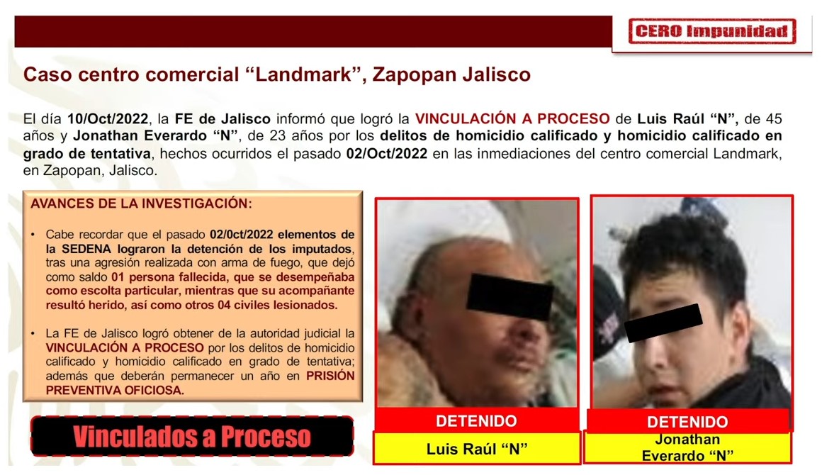 Recordó que por estos hechos Luis Raúl “V”, de 45 años, y Jonathan Everardo “T”, de 23 años, ya fueron vinculados a proceso.