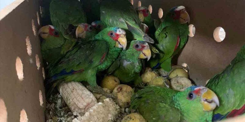 Detienen a hombre por transportar 50 cotorros y dos tigrillos. – En una caja de plástico y otra de madera, un hombre intentó transportar 50 cotorros guayabera de color verde y dos triguillos en un autobús del servicio público federal en Chiapas.