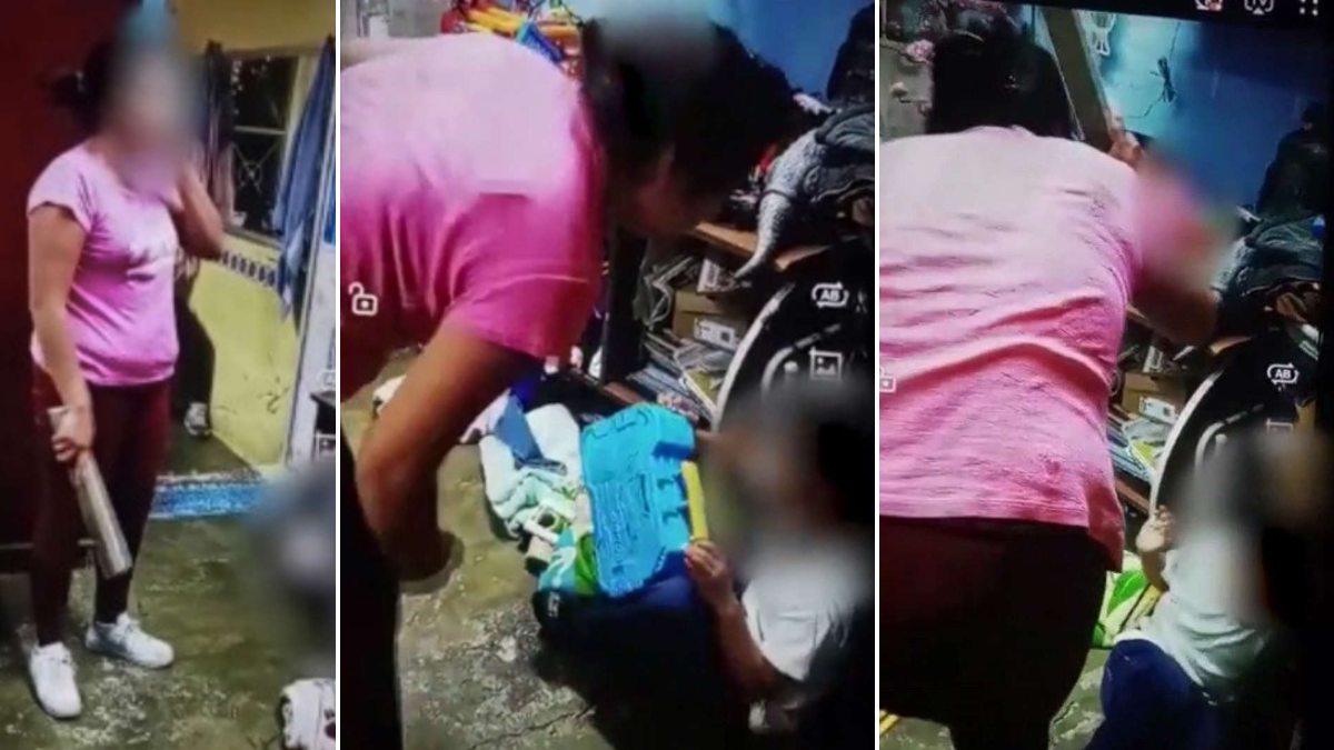 Detienen a una mujer por golpear con un palo a sus hijos pequeños; la agresión de Abigail “N” fue grabada por uno de sus familiares.