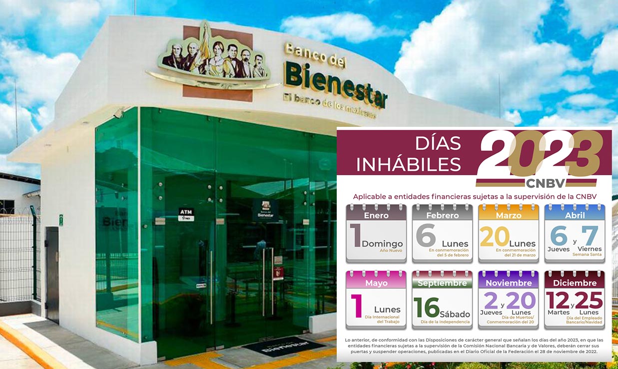 El gobierno de México, a través de la Secretaría de Hacienda y El Banco Del Bienestar, difundió este lunes nueve de enero, el calendario de fechas de los cierres bancarios en que los bancos del país se verán obligados a cerrar sus oficinas, fechas que coinciden en su mayoría con días clasificados como feriados.