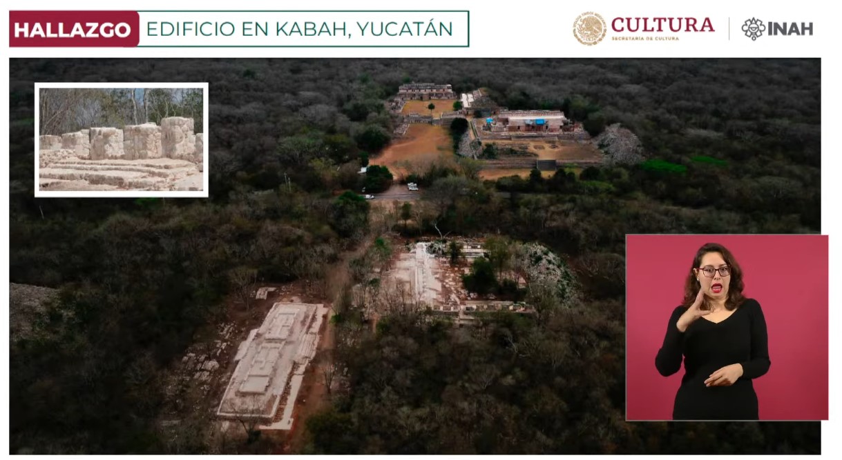 Resaltó que profesionales del INAH encontraron en la zona arqueológica de Kabah, en Yucatán, dos conjuntos de edificios ocultos bajo escombros y maleza.