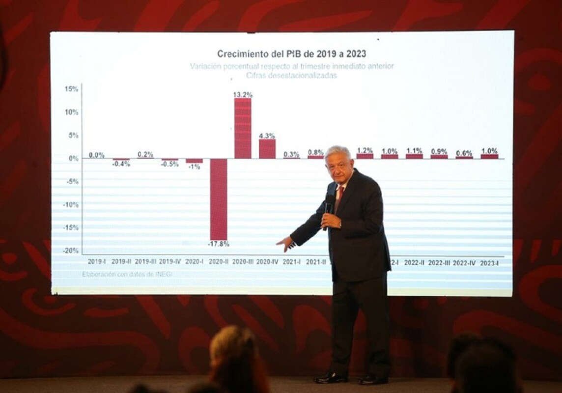 Al hacer un repaso de los indicadores económicos en su conferencia de prensa diaria, el mandatario mostró cifras que indican que al primer trimestre del año el crecimiento del PIB fue de un punto porcentual respecto al trimestre inmediato anterior.