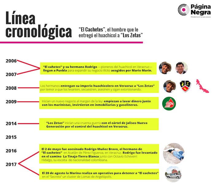 Hace más de 10 años Othón Muñoz Bravo, “El Cachetes”, fue pionero en la extracción del hidrocarburo en Veracruz y entregó a Los Zetas su presunto negocio ilícito luego de haber sido extorsionado y por temor a que lo asesinaran. Él, junto con su hermano Rodrigo, migraron a Puebla durante el sexenio de Mario Marín Torres y fueron acogidos desde entonces por las familias en el poder.