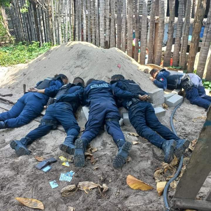 Sin embargo, por lo menos cinco de los policías, entre ellos una mujer, fueron «fusilados» después de haber sido sometidos, pues se localizaron muertos boca abajo y con sus propias esposas puestas sobre un montículo de arena.