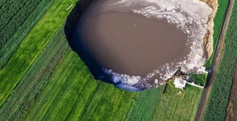 El socavón sigue aumentando de tamaño y ahora tiene una medida de 126 metros en su eje mayor y 117 metros en el menor.