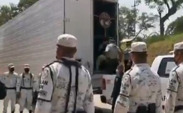Así que tras infringir las reglas de tránsito, los elementos de la Guardia Nacional le marcaron el alto total al conductor; para aplicarle la infracción correspondiente; sin embargo, aproximarse al camión de carga escucharon voces de auxilio provenientes de la parte trasera; por lo que, al abrir las puertas de la caja fueron localizadas personas de origen centroamericano; quienes viajaban amontonadas y sin documentos que acreditaran su legal estancia en el país.