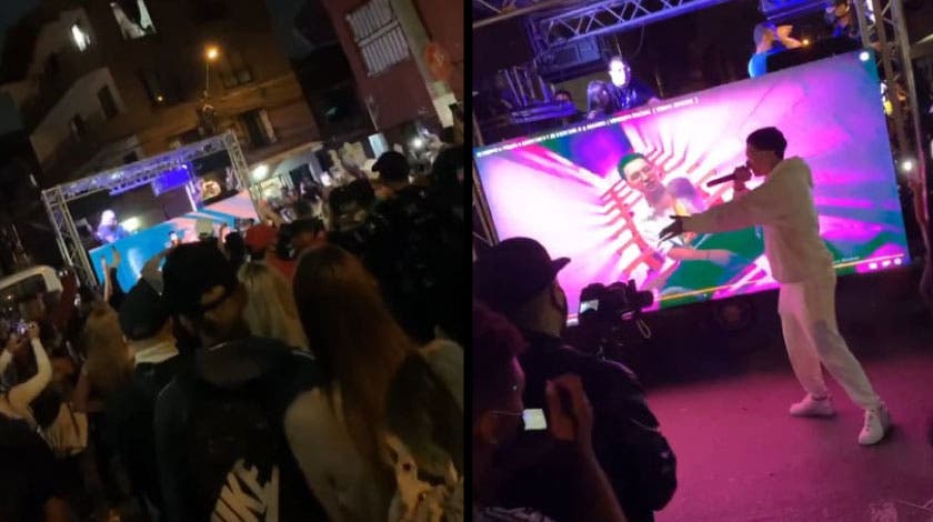 En el barrio de Trinidad en Medellín se registró un concierto de cantantes de reguetón, en la que hubo juegos pirotécnicos, un carro tarima y equipo de sonido a todo volumen.
