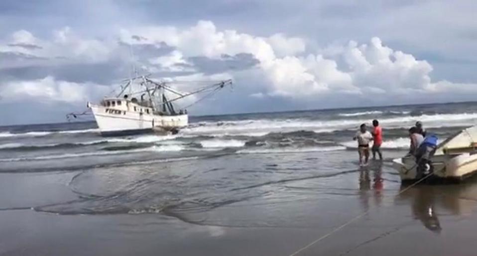 Encalla barco camaronero en Veracruz, logran rescatar a tripulación