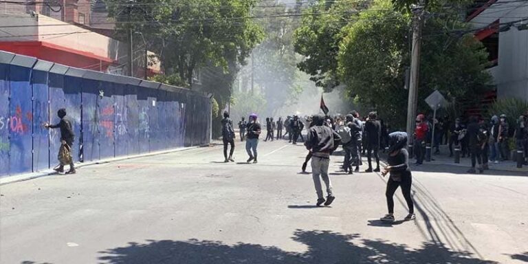 Según imágenes de Milenio y Televisa los encapuchados lanzaron piedras, por lo que los elementos de la Secretaría de Seguridad Ciudadana bloquearon las confrontaciones.