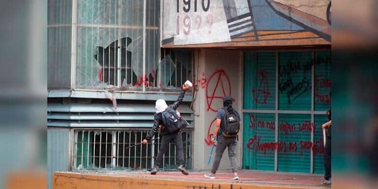 Encapuchados vandalizan instalaciones de la UNAM.- Un grupo de encapuchados que llegó a la manifestación de estudiantes del Colegio de Ciencias y Humanidades (CCH) lanzó piedras y petardos contra las instalaciones y el personal de la Universidad Nacional Autónoma de México (UNAM).