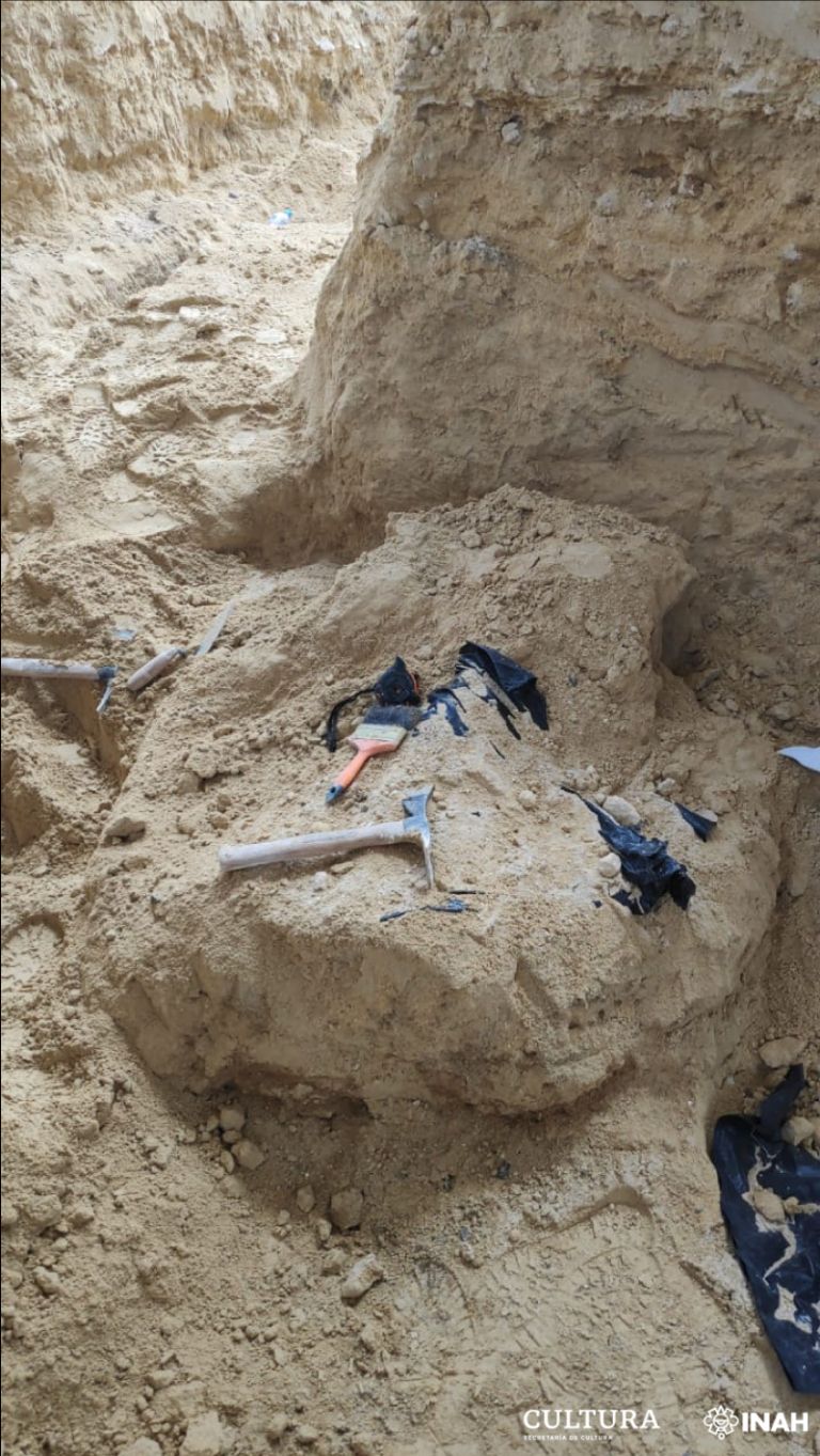 El INAH detalló que los huesos, que pertenecen al periodo Pleistoceno, fueron hallados a inicios de octubre cuando por un panteonero que preparaba más fosas de enterramiento con una retroexcavadora.