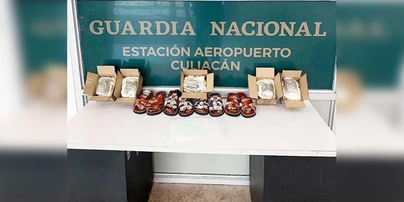 Encuentran mil pastillas de fentanilo oculto en huaraches.- Elementos de la Guardia Nacional encontraron un cargamento de aproximadamente mil pastillas de presunto fentanilo, el cual estaba oculto en cuatro pares de sandalias artesanales en el Aeropuerto Internacional de Culiacán, Sinaloa.