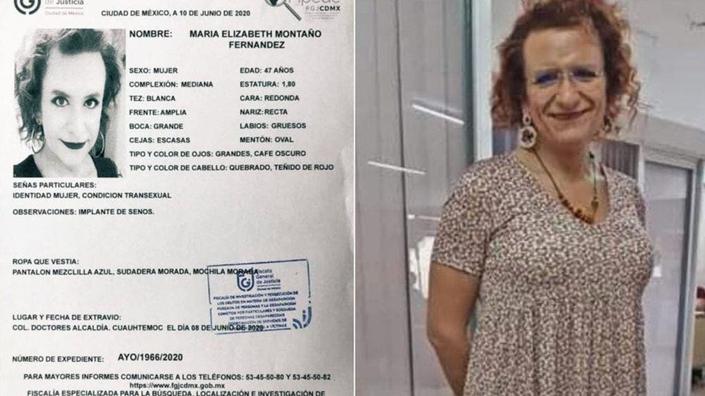 Encuentran sin vida a doctora desaparecida en Ciudad de México. Luego de su desaparición desde el pasado 8 de junio, hallan sin vida el cuerpo de la médico transgénero María Elizabeth Montaño Fernández, localizado a un costado de la carretera federal México-Cuernavaca, a la altura del poblado de Coajumulco, del municipio de Huitzilac, colindante con la ciudad de México.