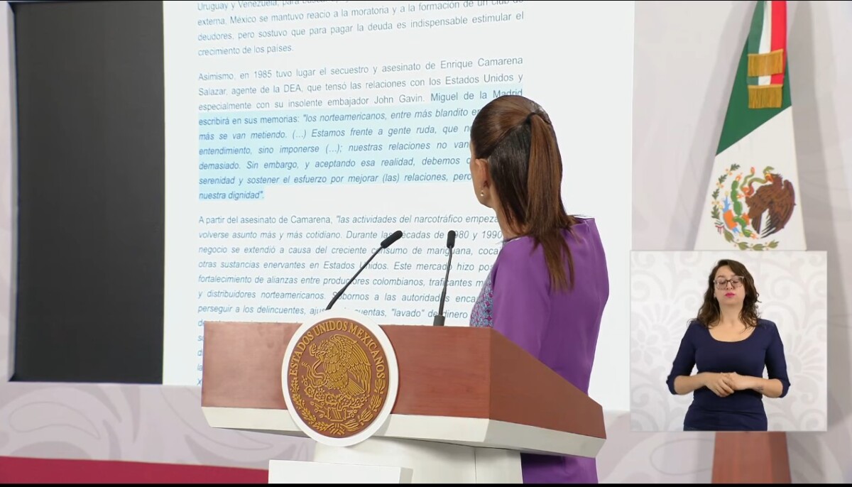 La jefa del Ejecutivo abrió la mañanera de este jueves con la lectura de un comunicado con su posición del caso, donde sostuvo que será la Fiscalía General de la República (FGR) la que determine, confirme a las leyes nacionales, si existen elementos para aprehender y extraditar a los imputados, como lo solicitó Washington.