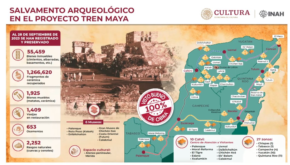 Una vez que han concluido los procesos para dar el visto bueno a las obras para el Tren Maya, el Instituto Nacional de Antropología e Historia se aboca a sus tareas del Programa de Mejoramiento de Zonas Arqueológicas y el análisis de todos los vestigios recuperados que permitan consolidar las aportaciones para una mejor comprensión de la civilización maya dijo el director general del instituto, Diego Prieto.