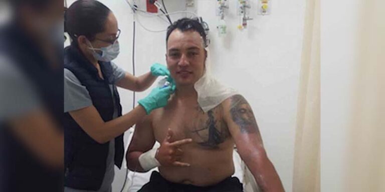 El policía presenta quemadura de segundo grado superficial en la región posterior del cuello, sin embargo, tras caer de la motocicleta también sufrió una contusión simple en la rodilla derecha por lo que tendrá que entrar a cirugía.