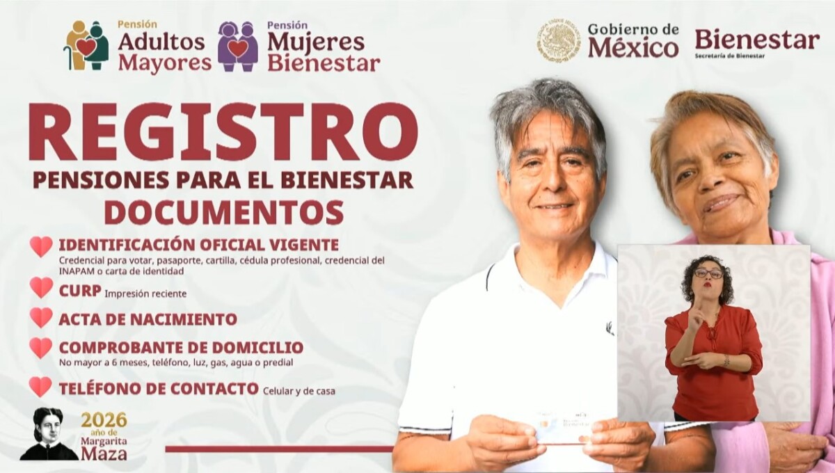 La secretaria del Bienestar, Ariadna Montiel Reyes, detalló que para el registro se deberá presentar identificación oficial vigente, CURP, acta de nacimiento, comprobante de domicilio no mayor a tres meses y teléfono de contacto.