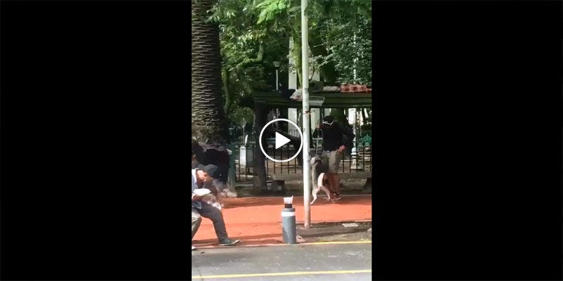 En el video se observa como el presunto entrenador levanta al animal y lo azota contra el suelo, mientras pisa la cabeza del perro.