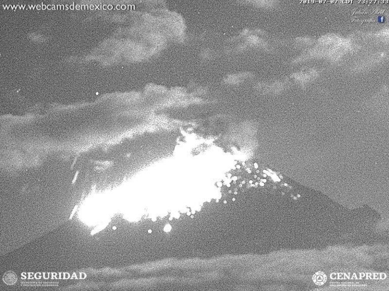 Estallido del Popocatépetl, a la 1:24 horas de la madrugada, siendo una explosión de baja intensidad que arrojó fragmentos incandescentes a una distancia menor a 1 km sobre el flanco norte.
