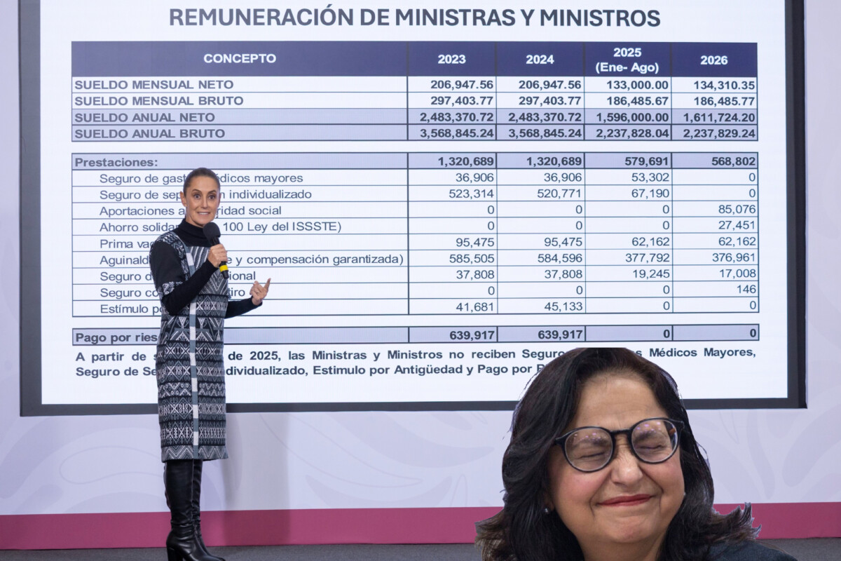 Además, señaló que, a partir de septiembre de 2025, las y los ministros no reciben Seguros de Gastos Médicos Mayores, Seguro de Separación Individualizado, Estímulo por Antigüedad o Pago por Riesgo.