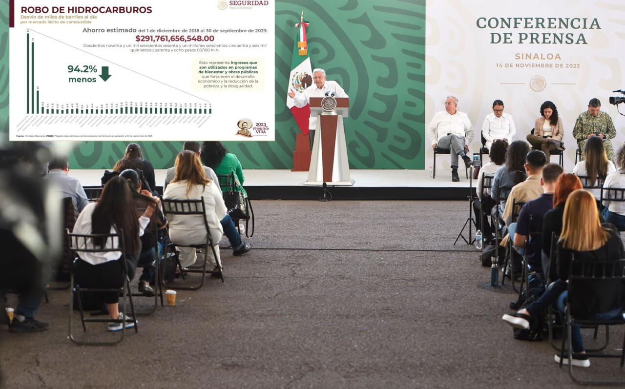 En Culiacán, Sinaloa, el presidente Andrés Manuel López Obrador encabezó la presentación del informe de seguridad correspondiente a octubre, mes en el que homicidios dolosos, secuestros y robo de combustible (huachicol) registraron tendencia a la baja.
