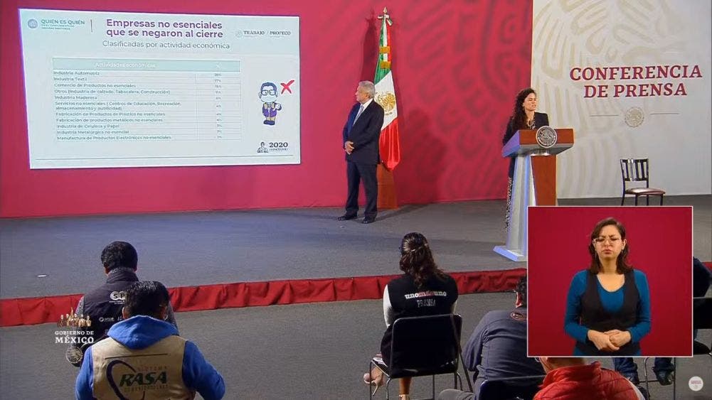 Desde el Salón Tesorería de Palacio Nacional, la secretaria de Estado indicó que 23 por ciento de las empresas que se negaron a cerrar se encuentran en los municipios del país más afectados por la pandemia de la Covid-19.