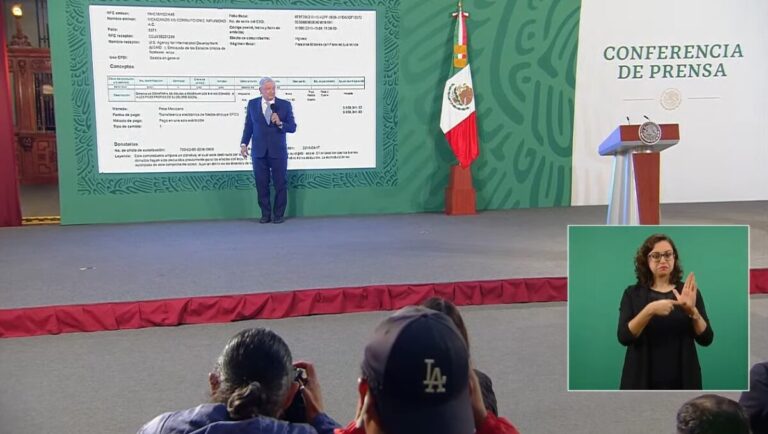 El Presidente exhibió presuntas facturas que demuestran que MCCI recibió 50 millones de pesos (2.5 millones de dólares) de USAID de 2018 a la fecha, además de 29.3 millones de pesos (unos 1.46 millones de dólares) para Artículo 19, “una asociación que lo ataca”.