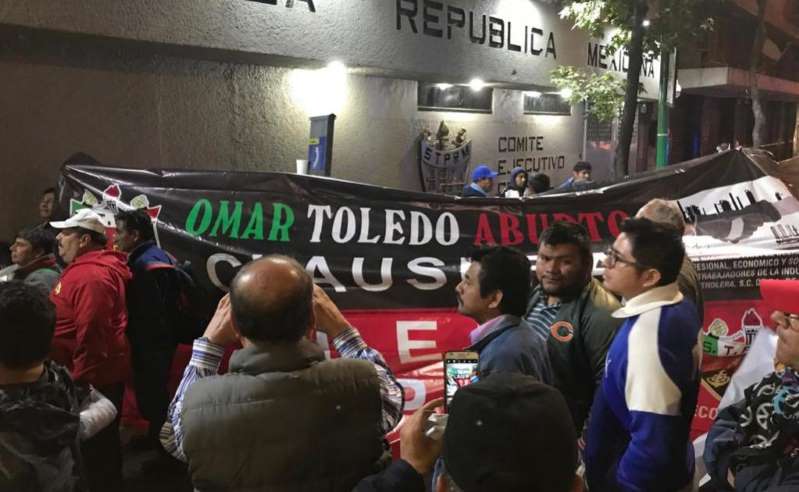 Un grupo de unas 100 personas encabezadas por Omar Toledo Aburto, disidente del Sindicato de Trabajadores Petroleros de la República Mexicana (STPRM), clausuraron simbólicamente la sede de esa organización en la Ciudad de México para exigir la salida del secretario general, Carlos Romero Deschamps y se investigue si ha estado involucrado en el robo de combustible.