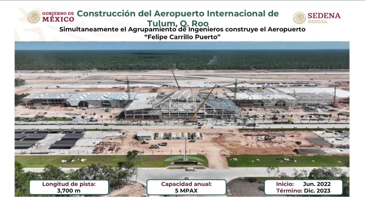 Gustavo Ricardo Vallejo, ingeniero residente general de la Dirección General de Ingenieros de la Secretaría de la Defensa Nacional (Sedena), detalló que como parte del proyecto se construye el Aeropuerto Internacional Carrillo Puerto de Tulum, que estará listo el 1 de diciembre para su inauguración.