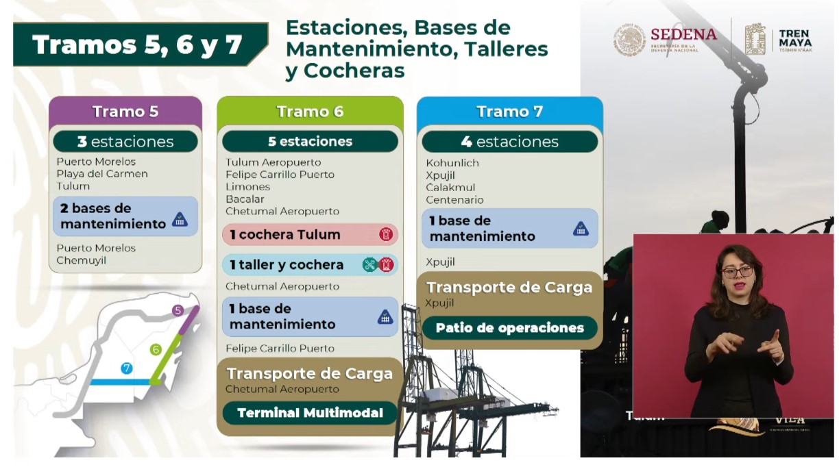 Al presentar los avances de los trabajos en estos tres Tramos, se informó que van el 5 de Cancún a Tulum y el 6 de ahí a Chetumal, con 366 kilómetros de vía doble electrificada; así como el tramo 7 con 254 kilómetros de vía sencilla que irá de la capital de Quintana Roo a Escárcega, Campeche.