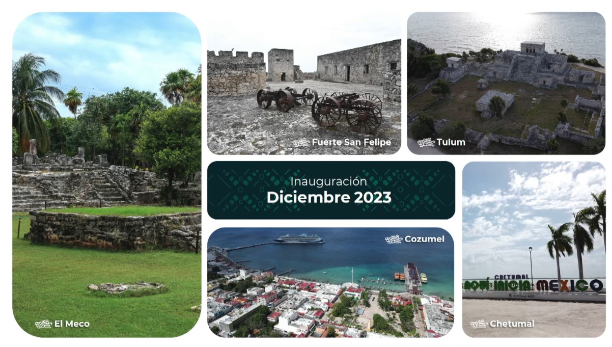 El Instituto Nacional de Antropología e Historia (INAH) conserva 12 sitios en los tramos 5, 6 y 7 del Tren Maya: El Meco, Tulum, Cobá, Muyil, Xel-Há, Paamul II, Chacchoben, Ichkabal, Oxtankah, Dzibanché-Kinichná, Kohunlich y Calakmul. Simultáneamente la Dirección General de Ingenieros de la Sedena construye dos Hoteles Tren Maya en Tulum y Calakmul.